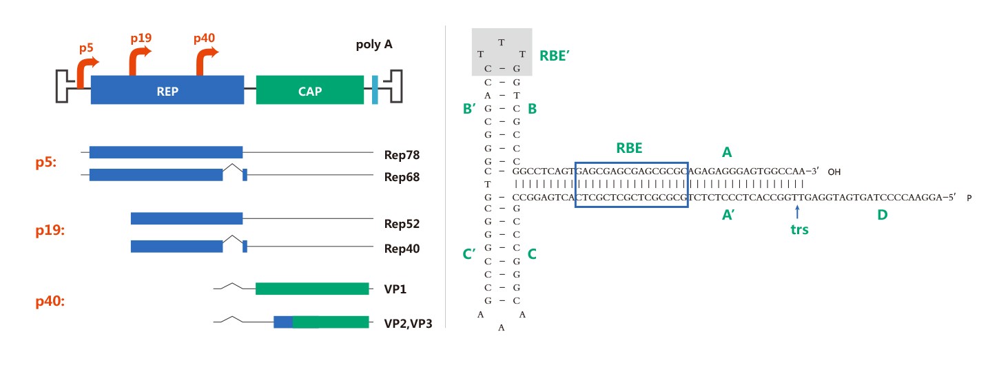腺相关病毒(AAV)属于微小病毒科,是一类小的、二十面体、无包膜病毒。1965年,AAV发现于腺病毒制备物中,并由此得名。AAV是一种复制缺陷性病毒,其复制依赖于其他辅助病毒,如腺病毒和疱疹病毒。AAV不编码自己的聚合酶,因此其复制过程依赖于宿主细胞的聚合酶活性。